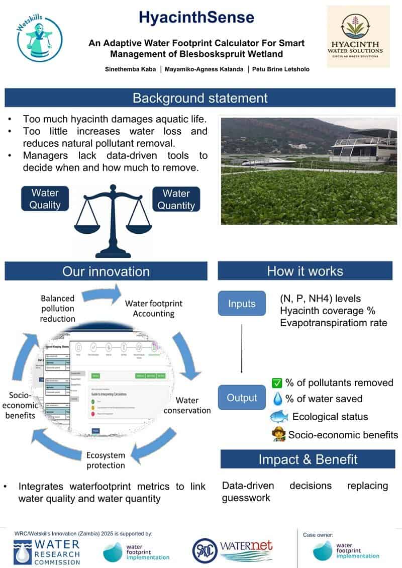We’re pleased to organize the inaugural Water Research Commission–Wetskills Innovation Hackathon. The hackathon is running virtually for four weeks, with an in-person workshop and finals at the 26th WATERNET/WARFSA/GWP-SA Symposium in Lusaka, Zambia (29–31 October 2025).