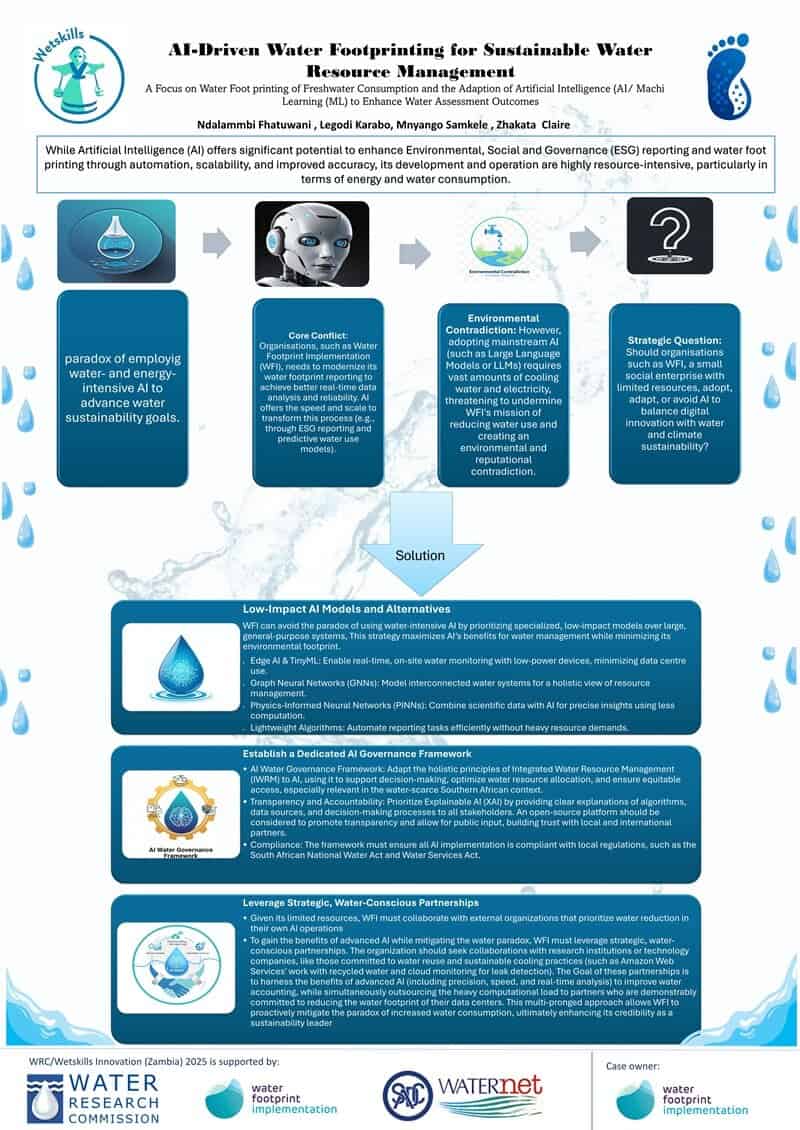 Artificial Intelligence (AI) has the potential to transform environmental, social and governance (ESG) reporting and water footprinting, through automation, speed and scalability. However, AI development and operation are highly energy- and water-intensive, raising questions about whether its application in sustainability fields may be counterproductive. How can organisations such as Water Footprint Implementation engage with AI responsibly: Should they adopt it, adapt it, or avoid it? Participants will evaluate the paradox, assess risks and opportunities, and propose innovative yet realistic pathways, that balance digital innovation with water and climate sustainability.